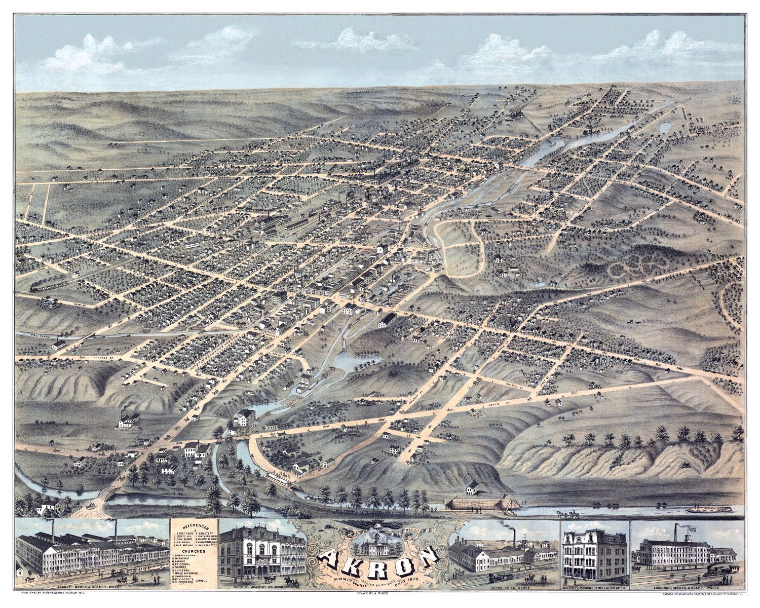 The city isn't just one big blob. It’s a collection of neighborhoods with very distinct vibes. If you look at the map of Akron, you’ll see Highland Square to the west of downtown. That’s the artsy, walkable part. Then you’ve got Goodyear Heights to the east, which was originally a planned community for rubber workers. The geography tells the story of the industry. The massive factories weren't just randomly placed; they were built along the canal and the rail lines that still cut through the city today.