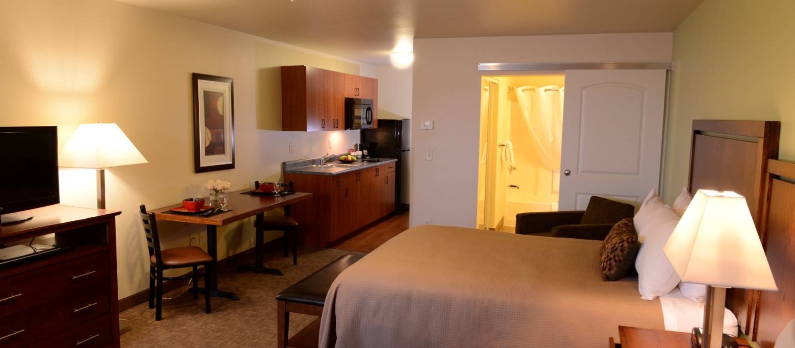 Let’s talk about the "Suites" part of the name. These aren't just bedrooms. Most rooms at the Aspen Hotel Anchorage Alaska come with a kitchenette. This is a massive deal in Alaska. Why? Because eating out in Anchorage is expensive. It’s not uncommon to drop $25 on a basic burger and fries. Having a full-sized fridge, a microwave, and a two-burner stove means you can hit the Fred Meyer (the local version of Kroger/Walmart) and stock up on actual food.