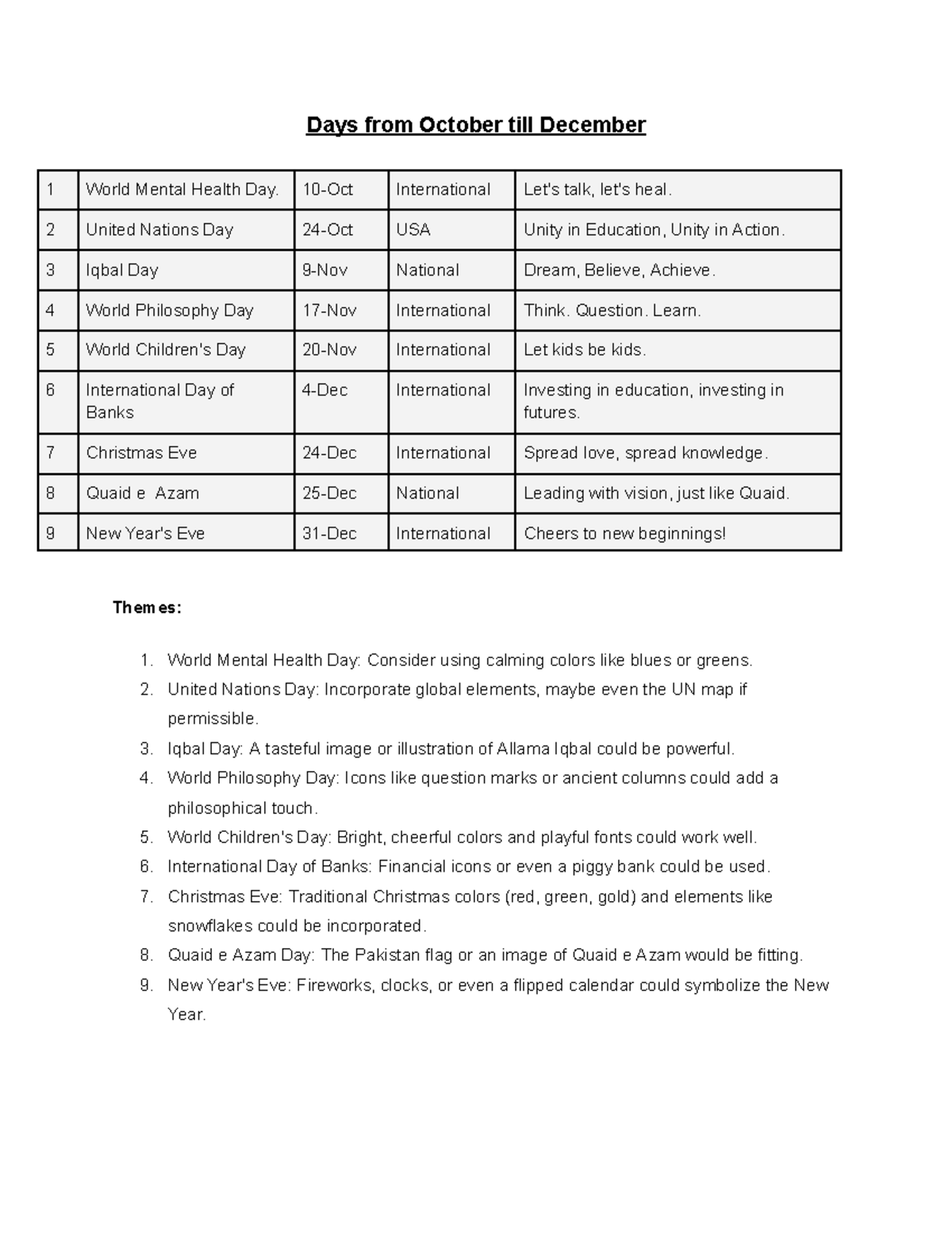 You should probably make a list. Not a "wish list," but a "must-do-or-the-world-ends" list. Focus on three things: