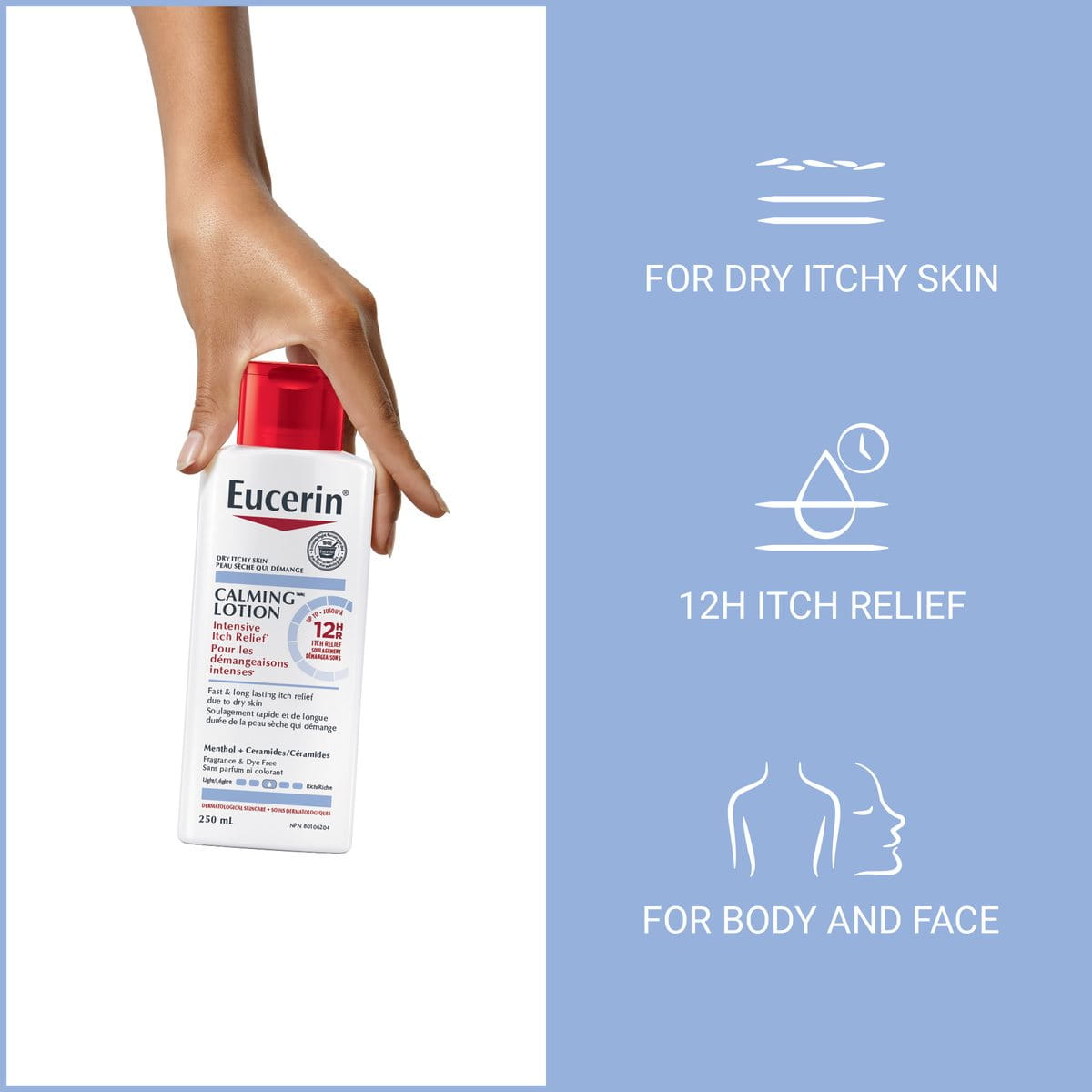 It’s 3:00 AM. You’re wide awake, and your shins feel like they’ve been colonized by a thousand tiny, caffeinated ants. You’ve tried the "don't think about it" method. It failed. You’ve tried the "just one scratch" method. Now your skin is angry, red, and frankly, the itching is worse. This is the specific brand of misery that Eucerin Itch Relief Intensive Calming Lotion aims to solve. But does it actually work, or is it just another thick cream that sits on top of your skin like grease on a pepperoni pizza?