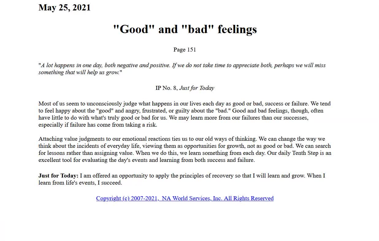 - Go to the NAWS website and look for the "Just for Today" link. It’s the fastest way.