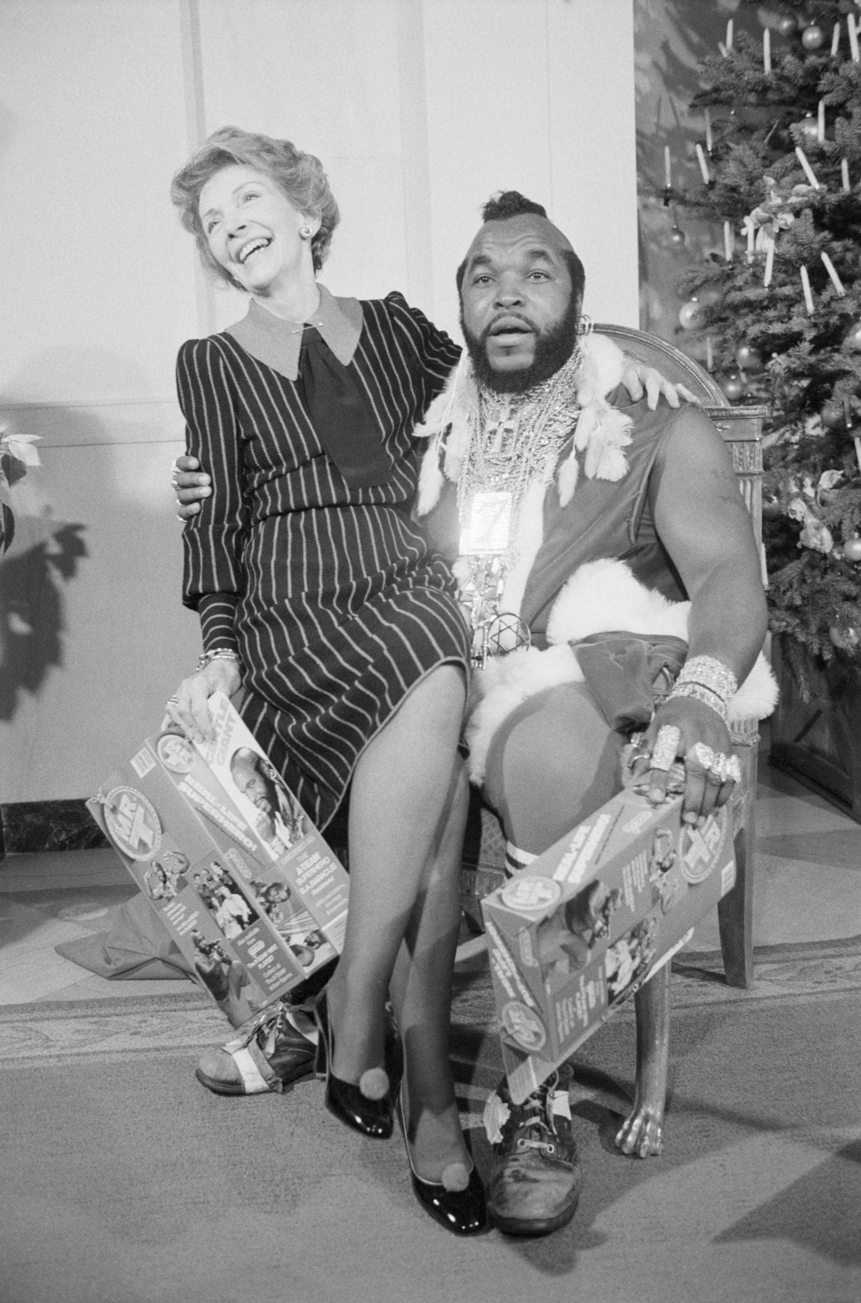 The room went quiet for a split second before the cameras started firing like machine guns. This wasn't just a holiday stunt; it was a collision of two worlds that seemed light-years apart. To Mr. T, it was a moment of profound pride. He’s gone on record many times, including a 2016 interview with People, saying how honored he was. He was a "kid from the ghetto" sitting in the White House with the First Lady. For Nancy, it was a masterclass in PR that humanized her "Just Say No" campaign.