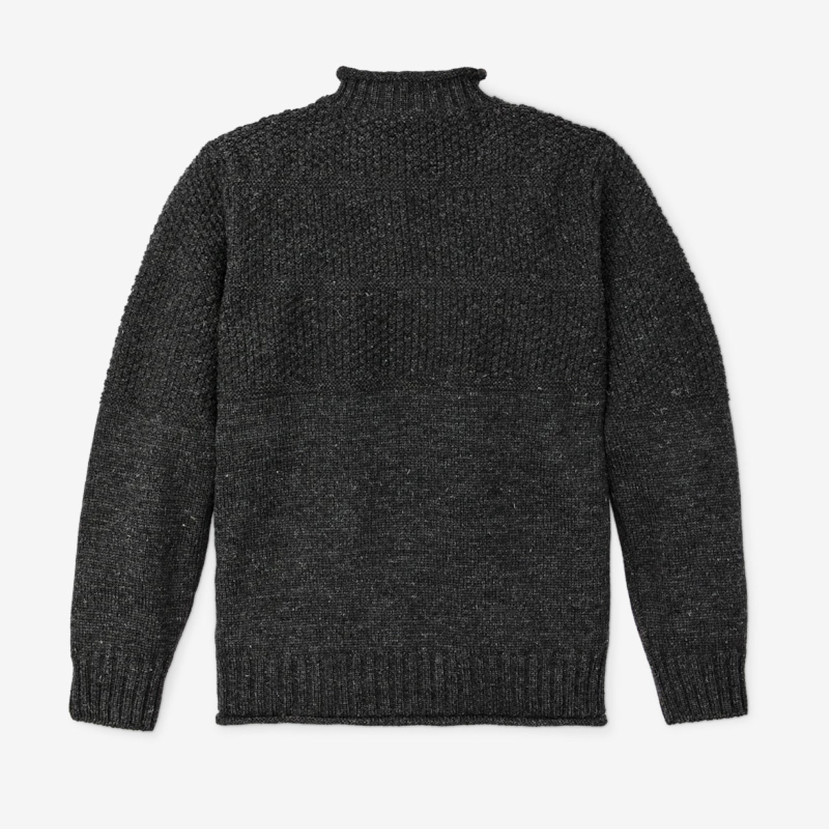 - Merino Wool: This is the workhorse. It’s breathable, naturally antimicrobial (meaning you don't have to wash it every time you wear it), and it holds the "roll" of the neck better than almost any other material.