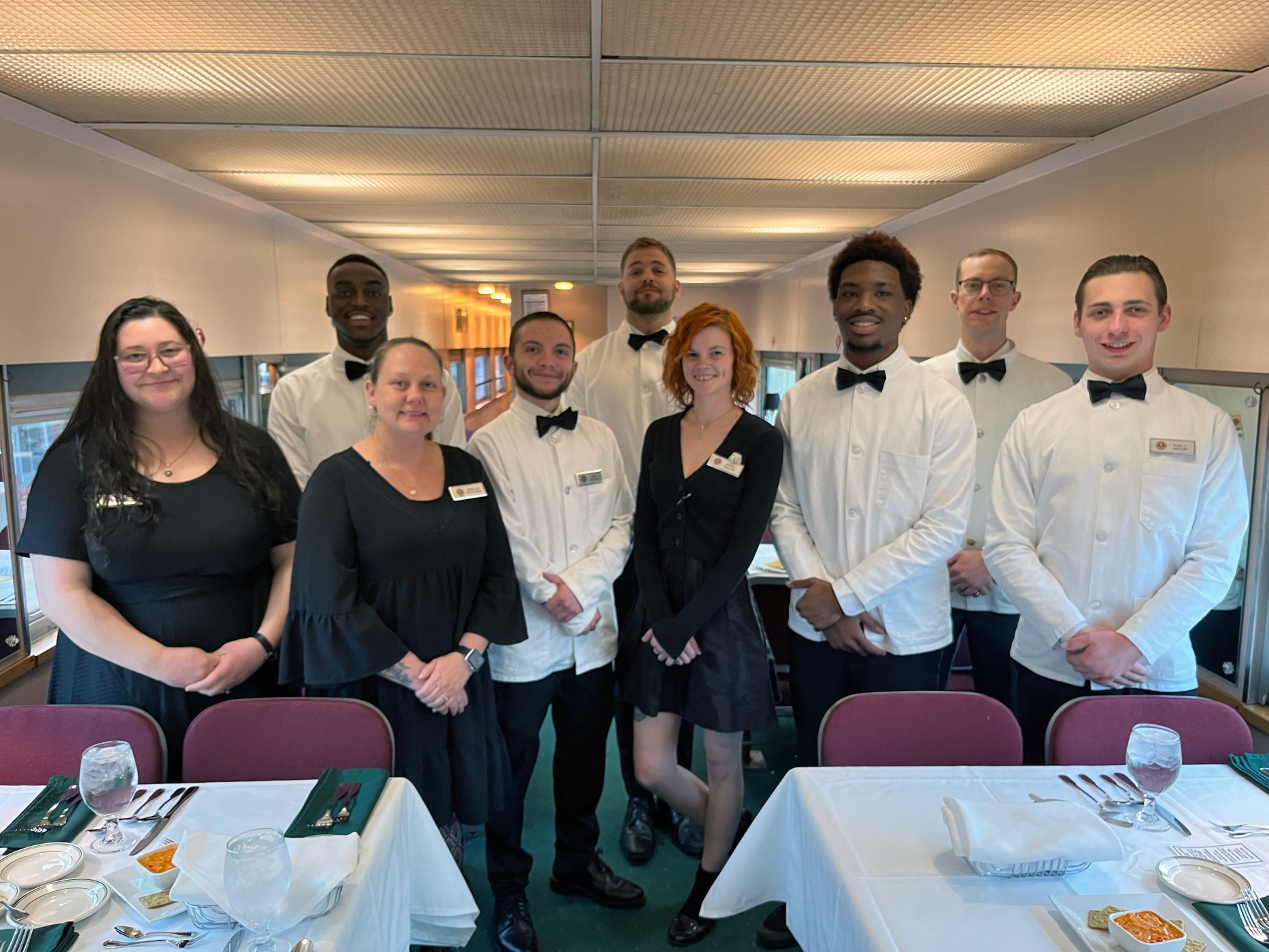 The menu is usually a fixed, four-course affair. You’ll typically see choices like slow-roasted beef, stuffed chicken breast, or a vegetarian pasta option. It’s surprisingly high-quality given that the kitchen is essentially a tiny, cramped galley on a moving vehicle. The chefs there aren't just heating up frozen trays; they’re plating real food in a space most modern cooks would find impossible. Honestly, the logistics of serving a full dining car while navigating track switches is the most impressive part of the whole night.