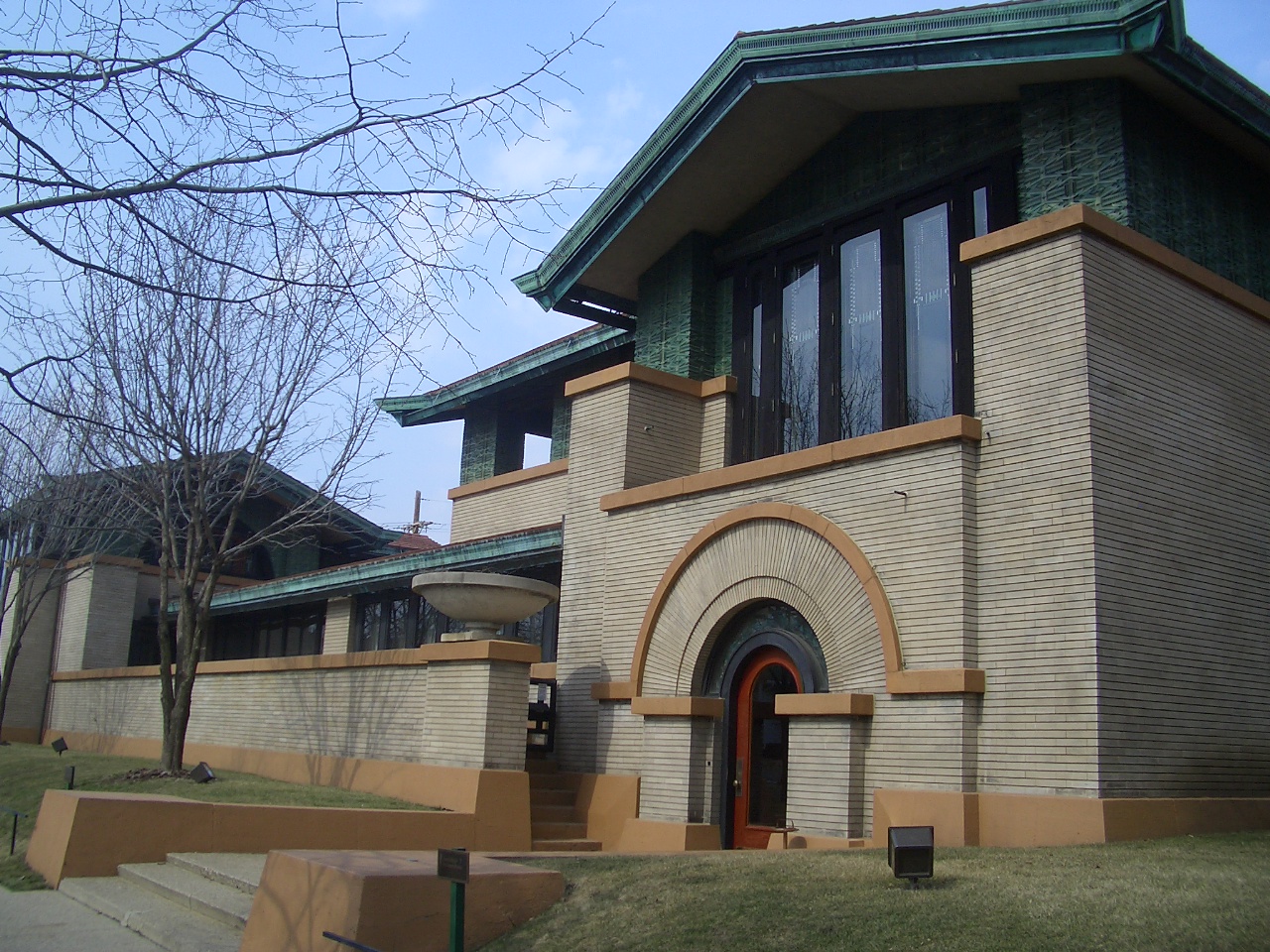 Susan Dana wanted to entertain. She wanted the Governor of Illinois, local activists, and the Springfield elite to feel welcomed, not confused. So, Wright designed a massive, Romanesque arched entryway. It’s bold. It’s obvious. It’s arguably the most "un-Wright" entrance he ever built, and yet it features some of his most iconic art glass—the "butterfly" motif that you’ll see repeated everywhere from the windows to the lamps.