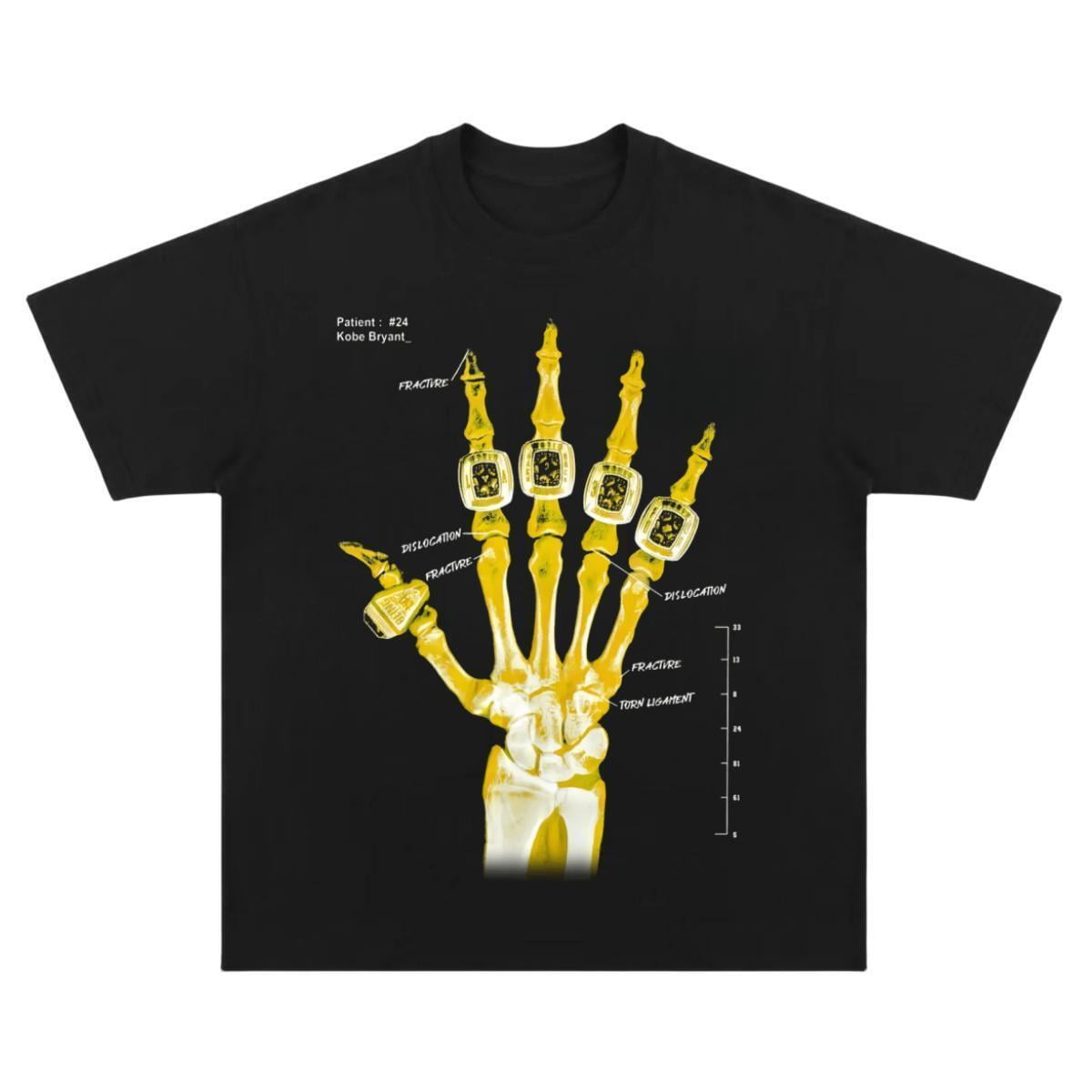 Honestly, if you saw a guy wearing a shirt with a skeleton hand covered in championship rings back in 2011, you knew exactly what time it was. It wasn't just a cool graphic. It was a statement. The kobe x ray t shirt—officially part of the "Broken Not Beaten" campaign—has become one of those rare pieces of sports apparel that actually means something deeper than just "I like this team." It’s a literal map of the pain Kobe Bryant played through to get his fifth ring.