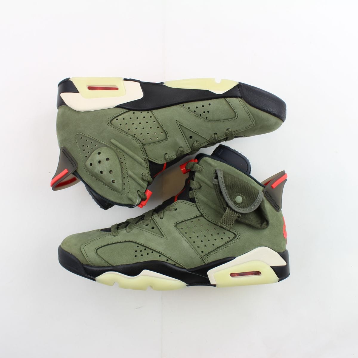 Interestingly, the release of the "British Khaki" 6s and the more recent "Medium Olive" Jordan 1 Lows didn't kill the value of the original 6. If anything, it made people nostalgic for the first time Travis used that olive green suede.