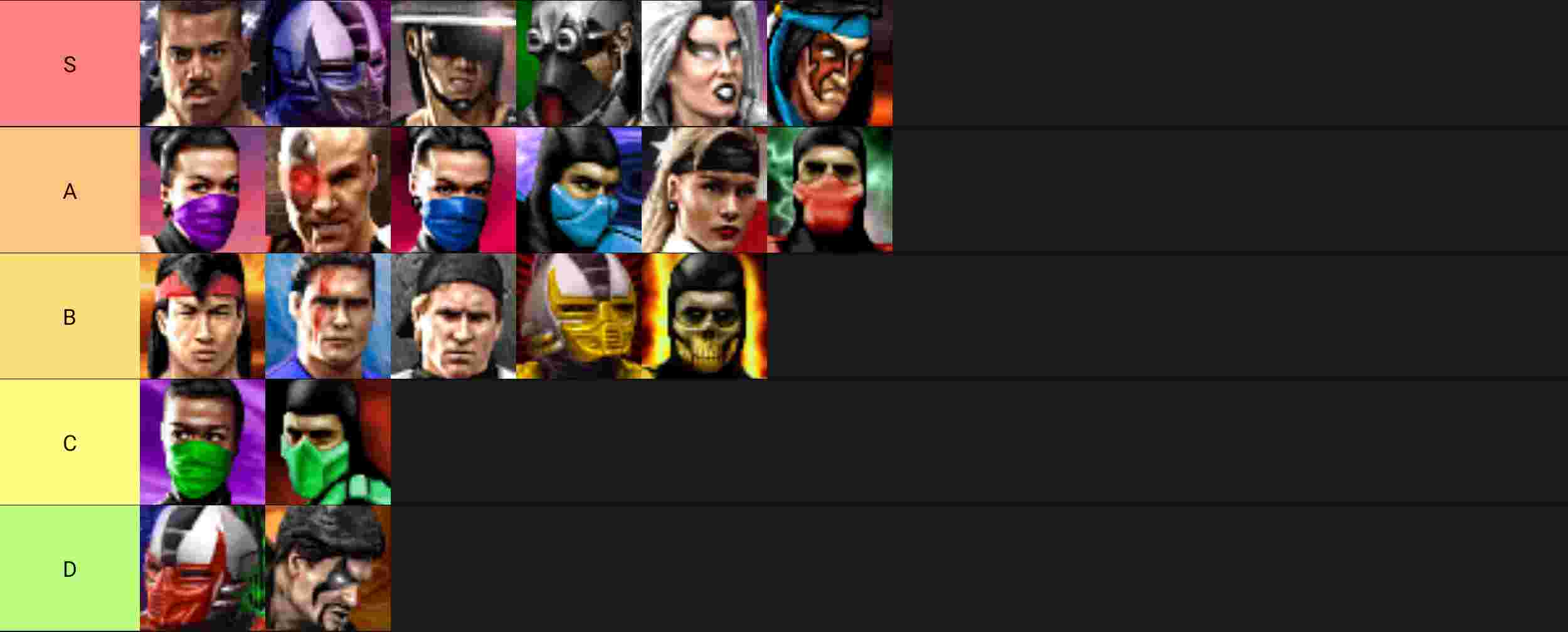 These two are the outliers. Human Smoke is technically "unlocked" by holding specific buttons (Away + High Punch + High Kick + Block + Run) while selecting the purple cyborg Smoke. Because he’s a "transformation" rather than a separate slot, the CPU doesn't usually pick him.