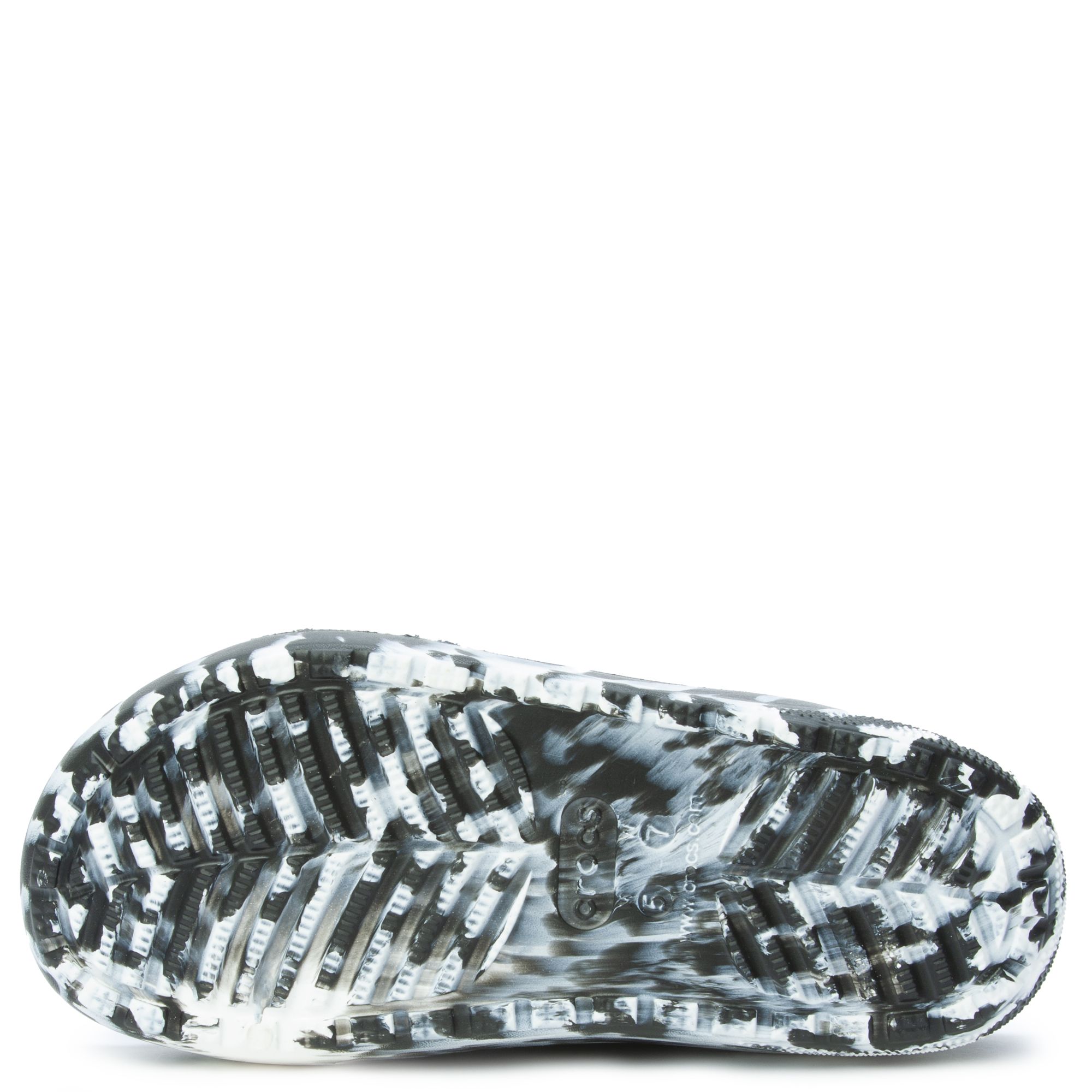What started as a niche variant of the Classic Clog has turned into a legitimate fashion staple. It’s not just about the comfort anymore, though that’s obviously the baseline for anything Crocs puts out. It’s about the fact that every single pair is technically unique. Because of the way the "marbling" process works—swirling two different colors of Croslite foam together while they’re still liquid—no two shoes have the exact same pattern. You might get a pair that’s mostly white with tiny black veins, or a dark, moody pair that looks like a stormy sky. It’s accidental art for your feet.