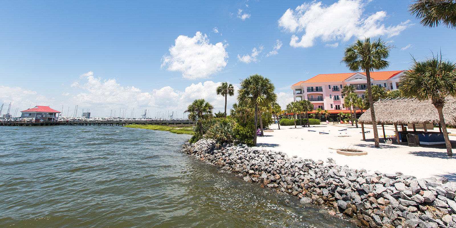 The Beach Club at Charleston Harbor Resort and Marina acts as a gateway. You get the polish of a high-end resort, the grit of a working marina, and the charm of a historic city all in one go. It’s a hybrid.