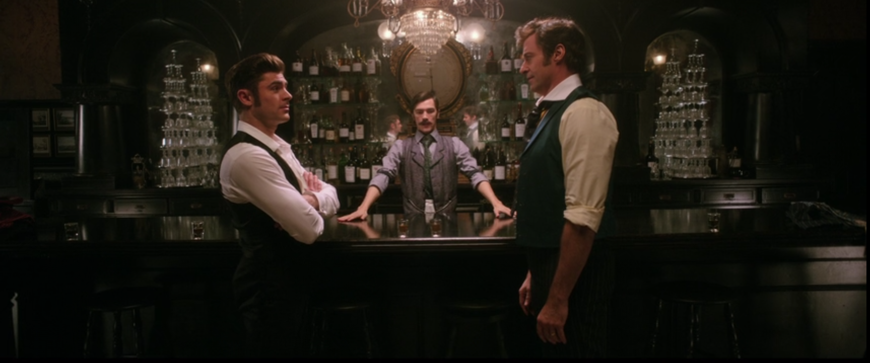 The scene features P.T. Barnum (Hugh Jackman) trying to convince Phillip Carlyle (Zac Efron) to ditch his high-society life for the circus. It’s loud. It’s fast. There are sliding shot glasses. But underneath the choreography, it’s a brutal negotiation.